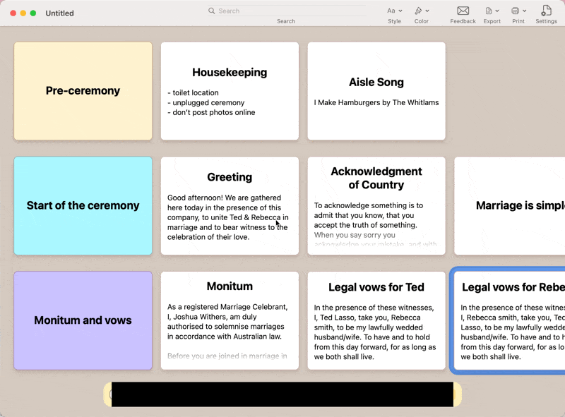 So when I saw Card Buddy being reviewed in issue 110 of Hulry I thought I’d see if it would work for a celebrant assembling their ceremony.