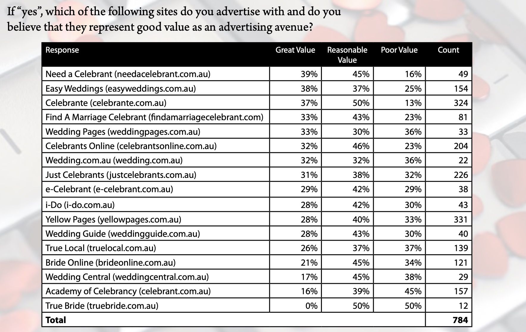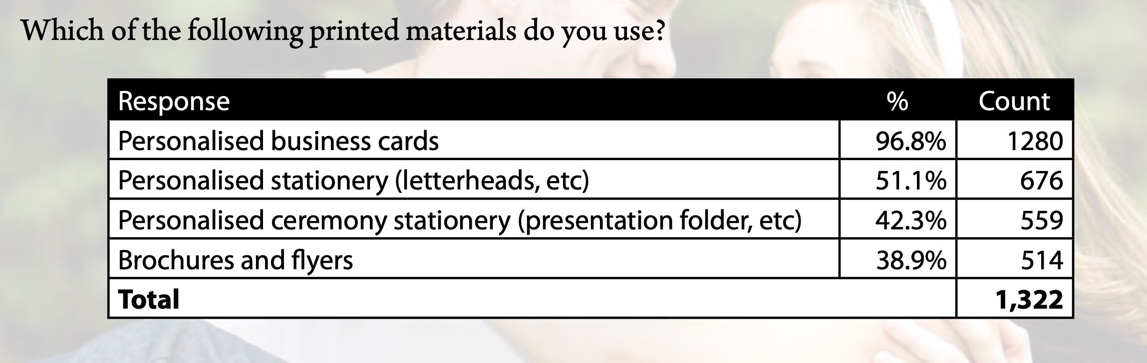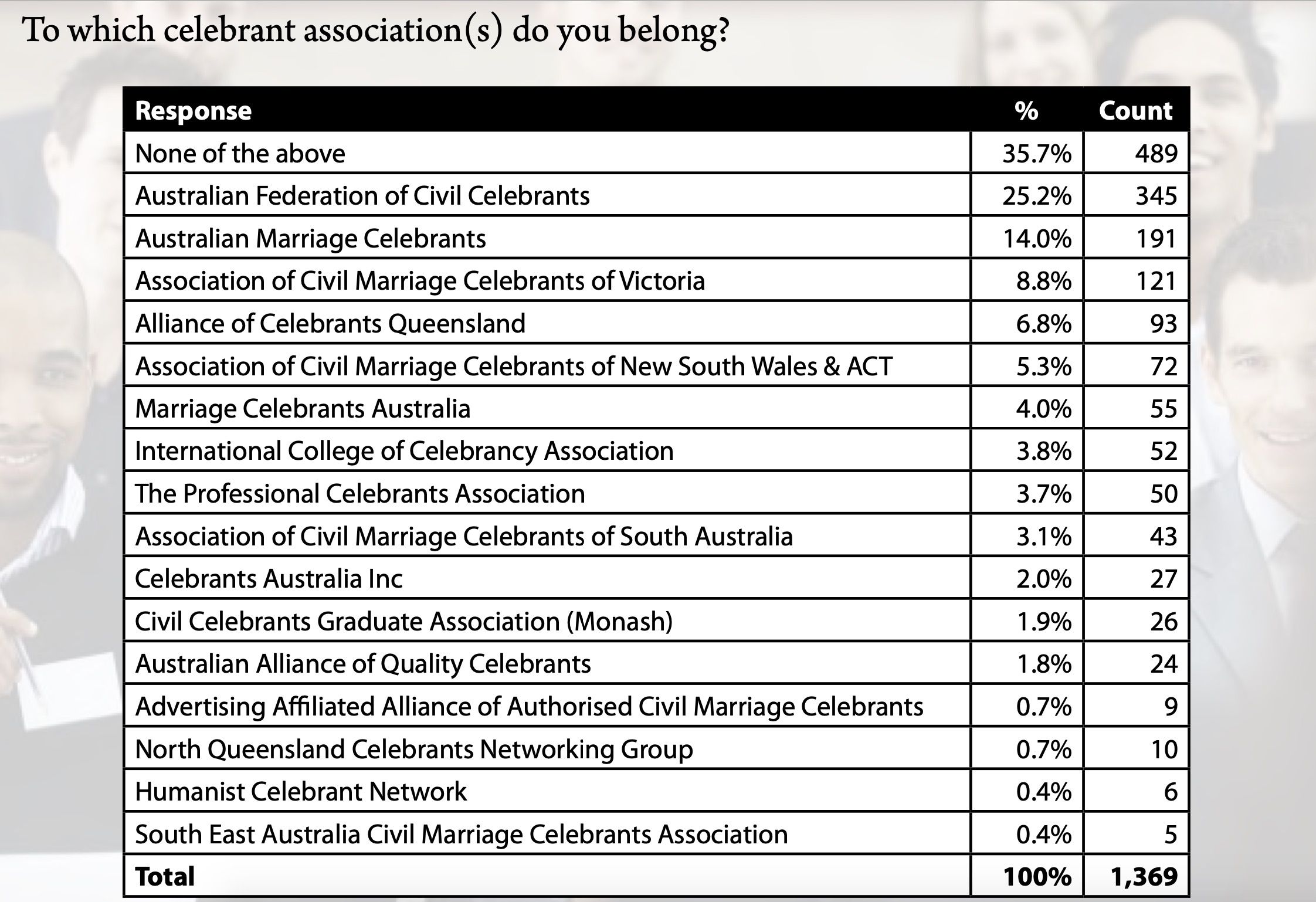 11 years ago (in 2009), celebrant directory website Celebrante, conducted a survey of about 1400 celebrants. I’m cleaning out my Dropbox folder and found the survey, so I thought it’d be an interesting piece of quarantine content for us all while we’re busy doing not a whole lot in regards to weddings.
